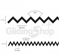 Selbstklebend auf Trägerfolie, Zackenwinkel 90°